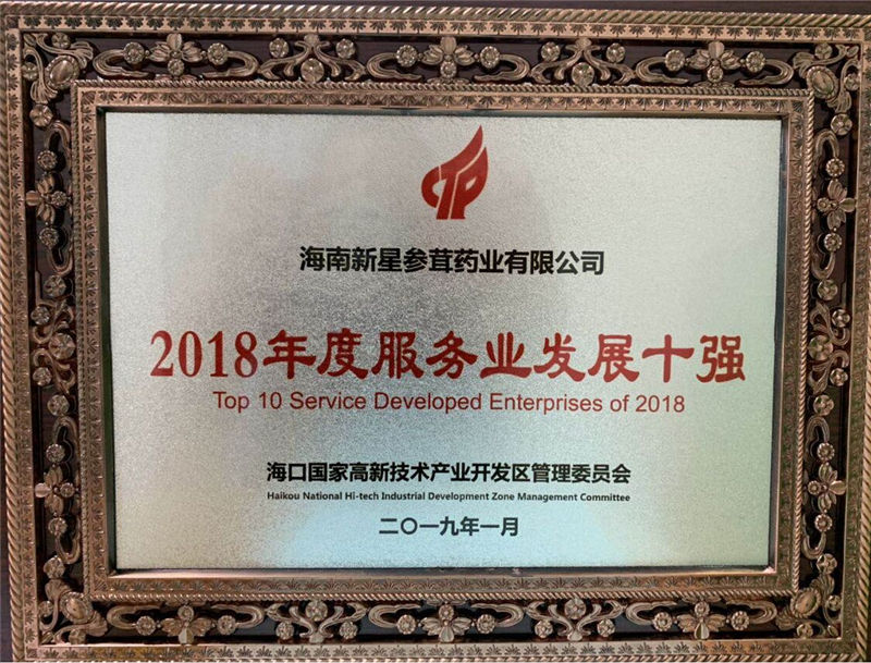 省、市相關(guān)部門領(lǐng)導(dǎo)、管委會領(lǐng)導(dǎo)及各部門負責(zé)人歡聚一堂,共同見證這一重要時刻,我司海南新星參茸藥業(yè)有限公司榮膺?趪腋咝录夹g(shù)產(chǎn)業(yè)開發(fā)區(qū)管理委員會評選的“2018年度服務(wù)業(yè)發(fā)展十強企業(yè)”。